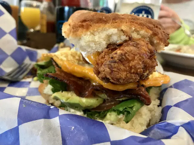 For my entrée, I opted for the Eureka biscuit sandwich. Did you think I was about to walk into The Buttered Biscuit and not try a biscuit? No way. It proved to be a very traditional take on a classic Southern staple. Light, fairly fluffy, but with a good bite, this biscuit also had a nice crumble. Unfortunately, this crumbly trait can be a bit of an obstacle when navigating a sandwich, as things tend to fall apart with each bite. That said, the Eureka, with its fried chicken, bacon, cheddar, fried egg, and cilantro aioli, was a messy winner, as was another biscuit sandwich, the Razorback (fried egg, sausage, tomato, avocado, green onion, and comeback sauce).
